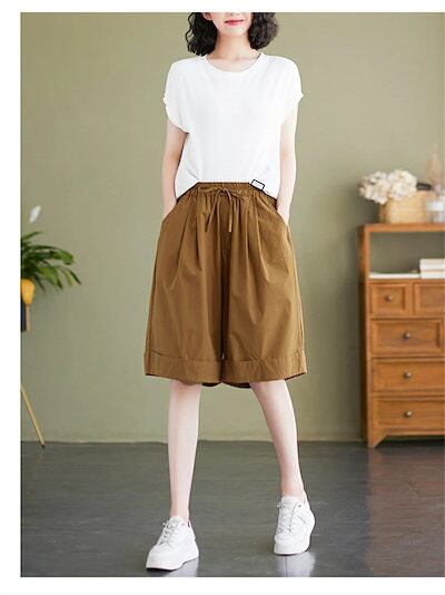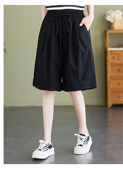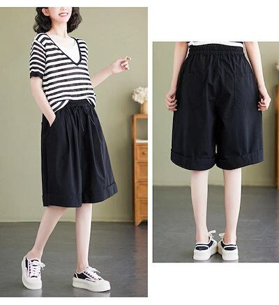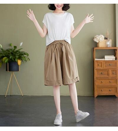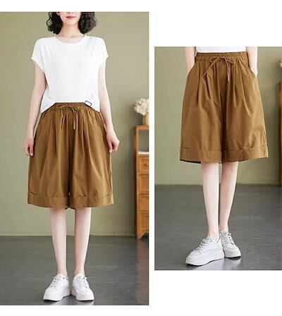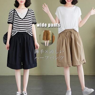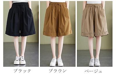 ハーフパンツ 夏 パンツ 綿 ショートパンツ レディース 夏 ワイドパンツ パンツ キュロット 五分丈 ボトムス ガウチョパンツ 大きいサイズ ズボン ワイド aライン ゴム ハイウエスト 無地 ウエ