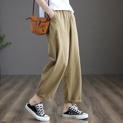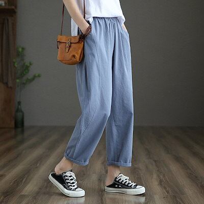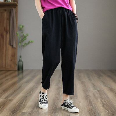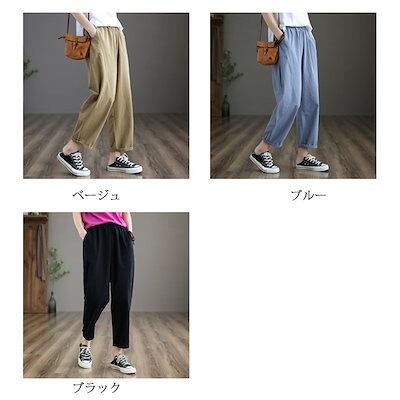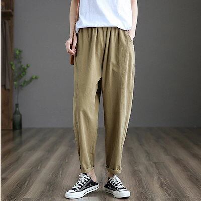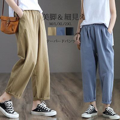 テーパードパンツ 細身 レディース パンツ 夏 ボトムス ロングパンツ ストレートパンツ ウエストゴム パンツ テーパード ハイウエスト サルエルパンツ 9分丈 パンツ 綿 コットン ストレート 美脚