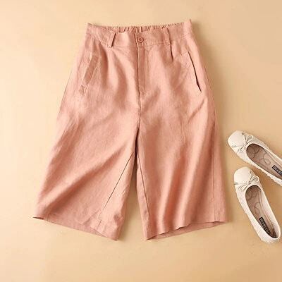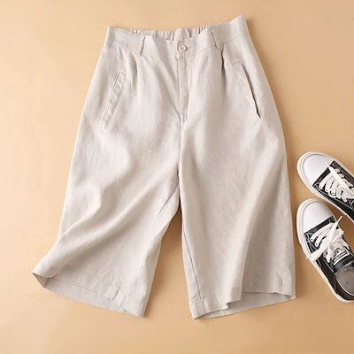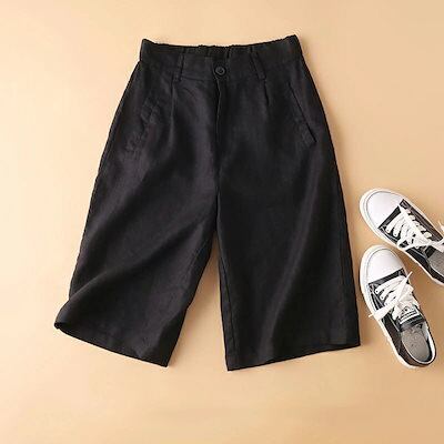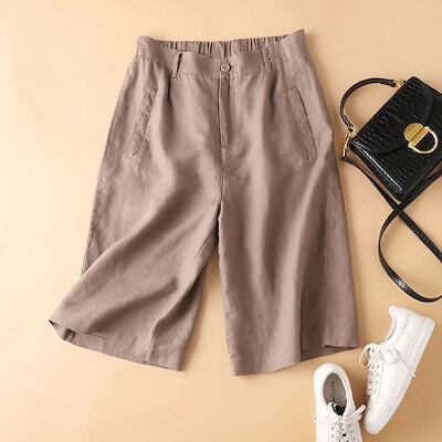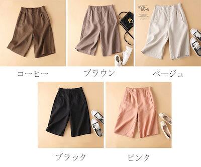 ショートパンツ レディース パンツ 夏 ワイドパンツ ボトムス ガウチョパンツ 綿 麻 ワイド 5分丈 パンツ ショート丈 ハイウエスト ゴム イージーパンツ 無地 リネンパンツ 美脚 ナチュラル 薄