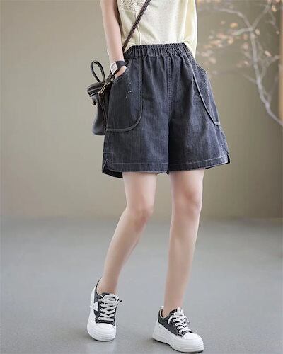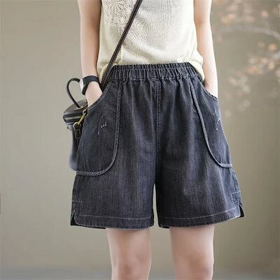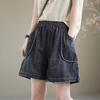 パンツ ショートパンツ レディース 夏 ハーフパンツ パンツ キュロット 五分丈 ボトムス デニム ガウチョパンツ 大きいサイズ ズボン ワイド aライン ゴム ジーンズ ハイウエスト 無地 薄手 夏
