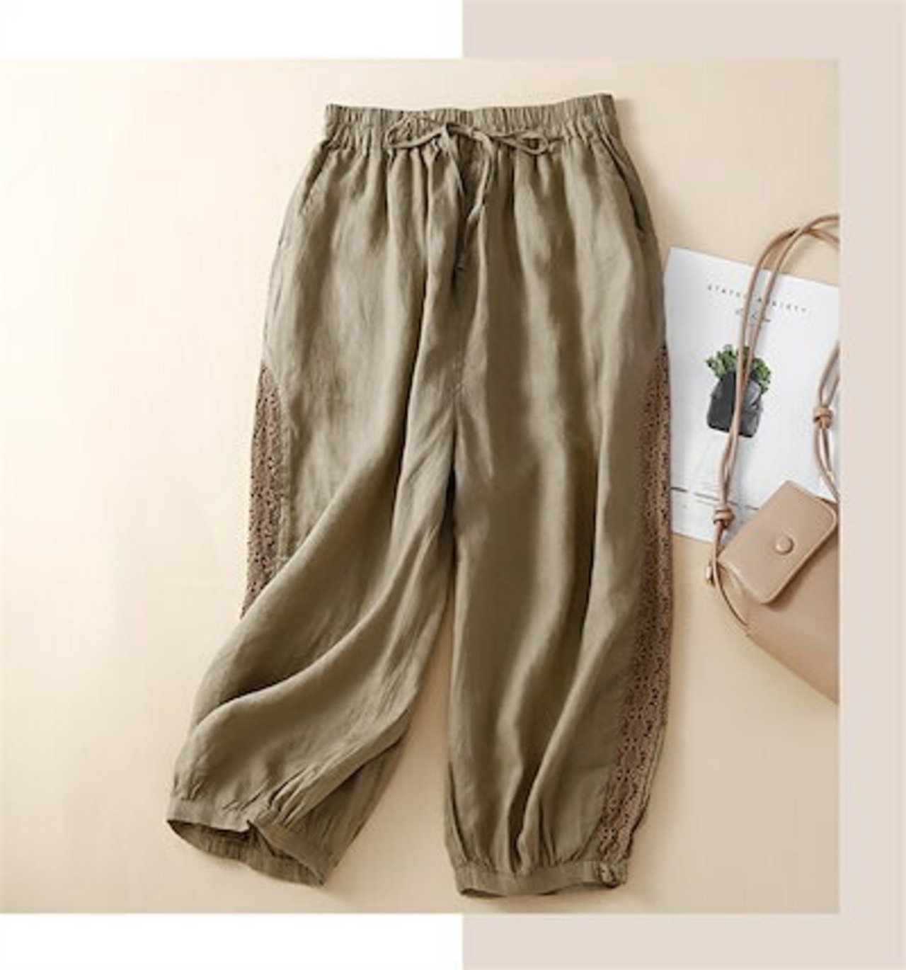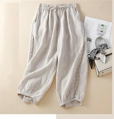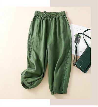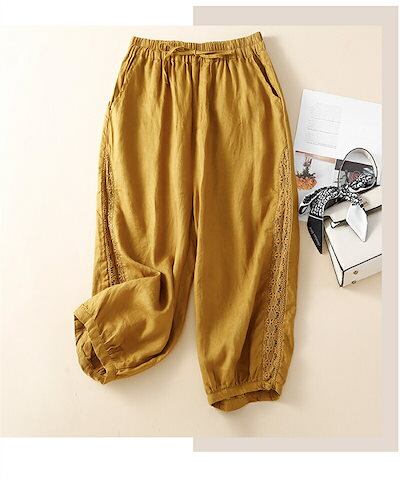 パンツ ボトムス 夏 綿麻パンツ ロングパンツ ワイドパンツ レディース 綿麻 レース 大きいサイズ リネン ボトムス ロングパンツ 9分丈 サルエルパンツ リネンパンツ 総ゴム ハイウエスト 長ズボ