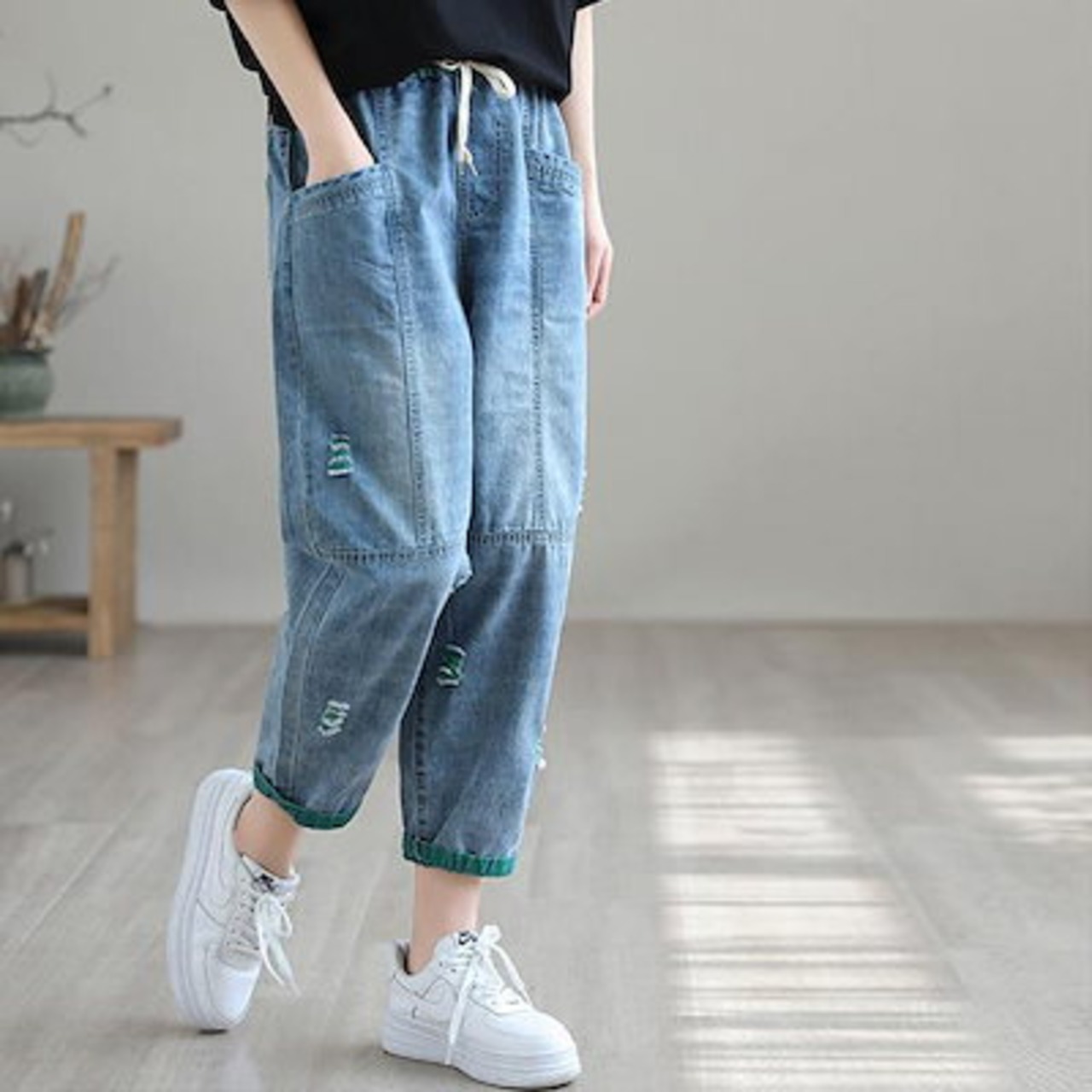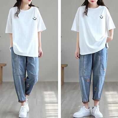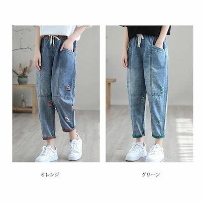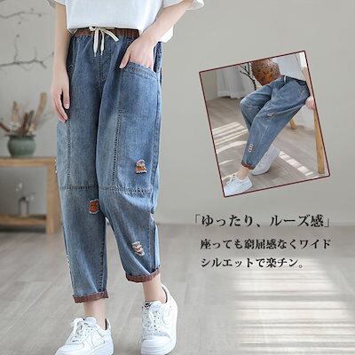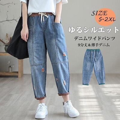 デニムパンツ レディース テーパードパンツ 春 夏 パンツ サルエルパンツ デニム ワイドパンツ ボトムス ハイウエスト 薄手 長ズボン ジーパン ロールアップ ジーンズ 大きいサイズ 無地 ロング