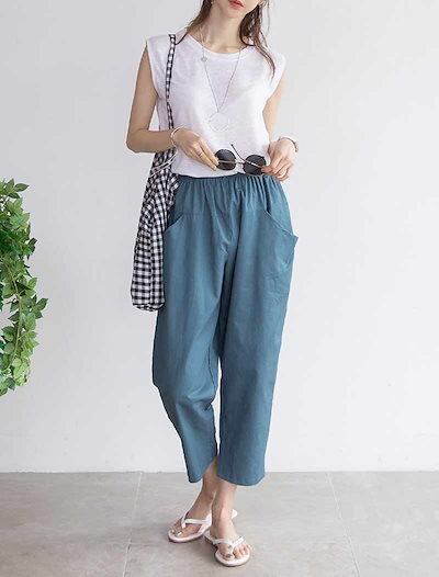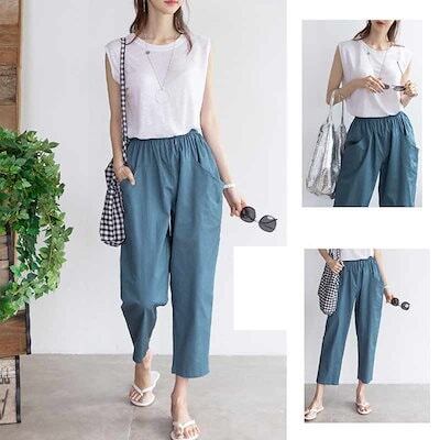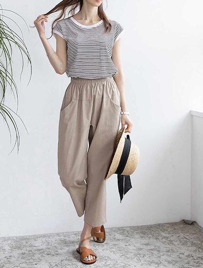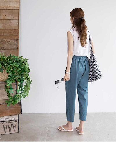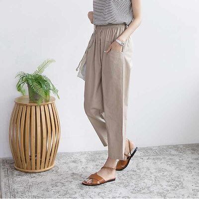 テーパードパンツ レディース ワイドパンツ きれいめ ハイウエスト テーパード パンツ ロングパンツ 春 秋 サルエルパンツ ウエストゴム パンツ ボトムス 細見え 無地 ポケット タックパンツ 夏