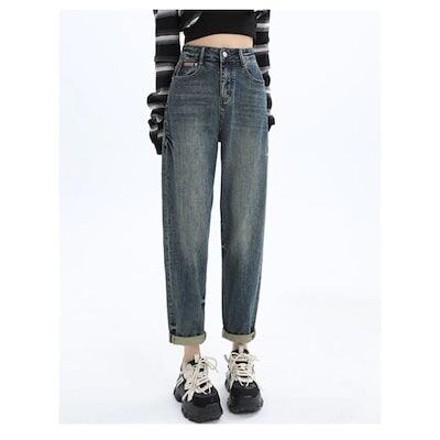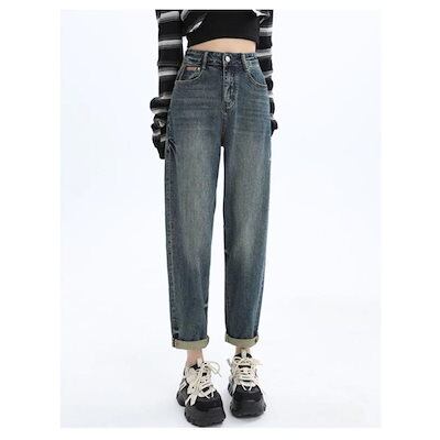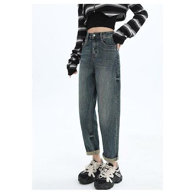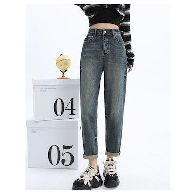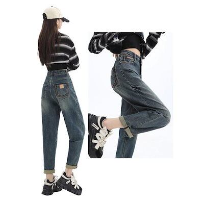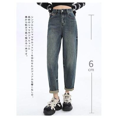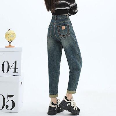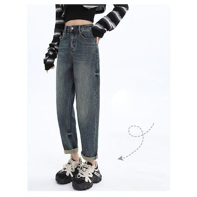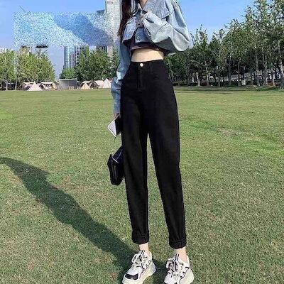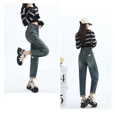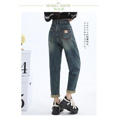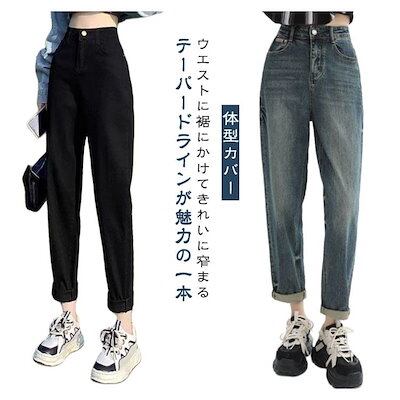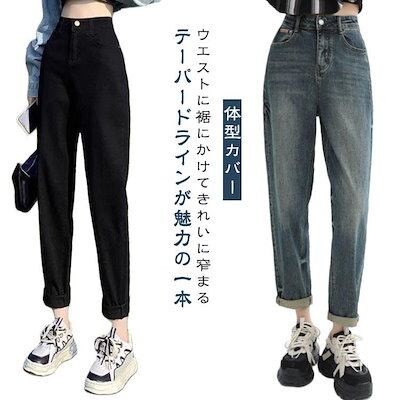2件200円引きテーパードパンツ レディース デニム 9分丈 テーパード ズボン ウェストゴム ゆったり ハイウエスト 体型カバー リラックス ボトムス 着痩せ 春