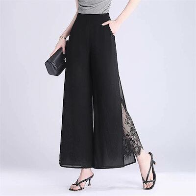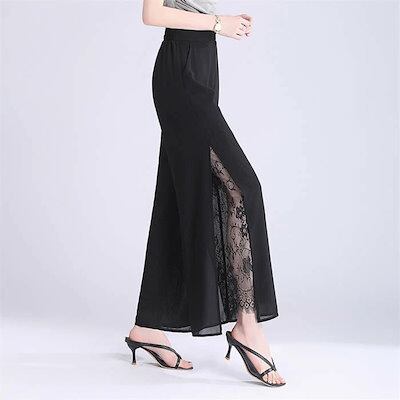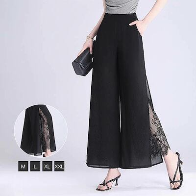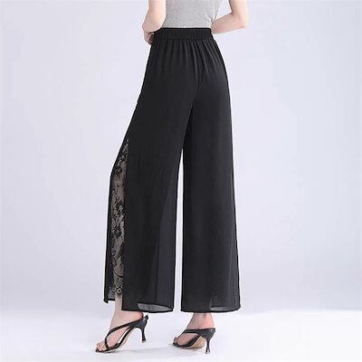 フレアパンツ ガウチョパンツ サイドスリット ロング丈 レディース 花柄 ワイドパンツ パンツ 夏 涼しい 薄手 ワイド ボトムス ロング丈パンツ ハイウエスト 大きいサイズ 接触冷感 涼感 きれいめ
