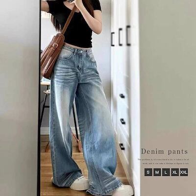 パンツ ワイドパンツ レディース ストレート ボトムス ワイドデニム デニムパンツ ジーンズ ジーパン デニム ハイウエスト大きいサイズ ゆったり ストリート 綿 春 夏 秋 冬 ワイド パンツ 美シ