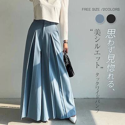 タック ワイドパンツ レディース ボトムス 春 夏 秋 ロング マキシ タックパンツ ワイド パンツ タック プリーツ スラックス 美シルエット オリジナル フレアパンツ ズボン ハイウエスト 着回し