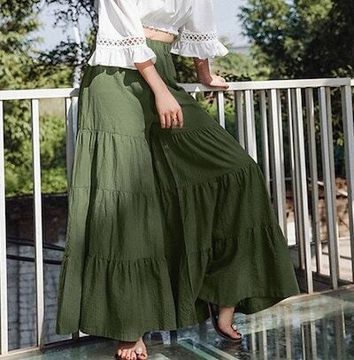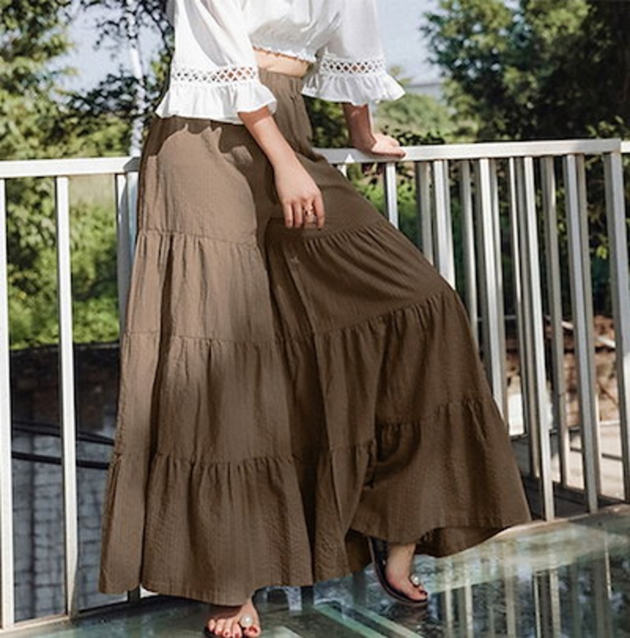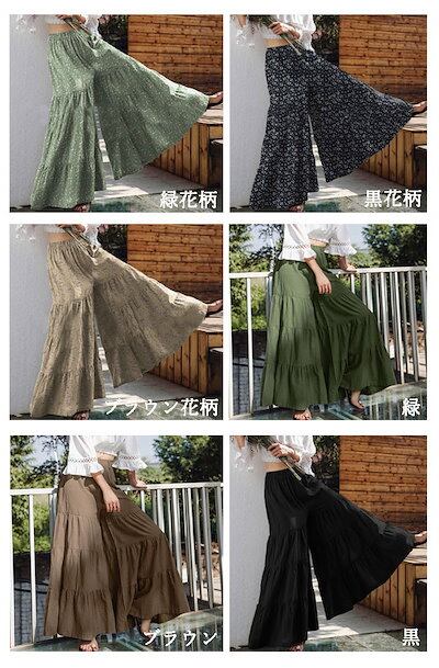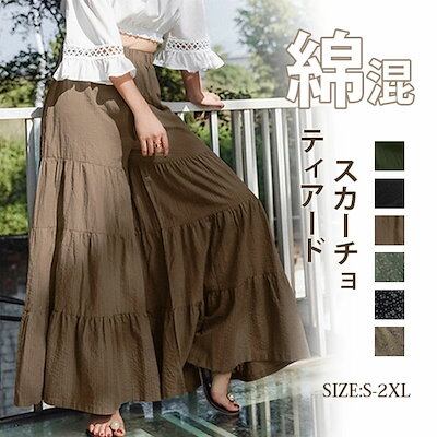 ワイドパンツ ロング丈 ティアード レディース マキシ丈 綿 ズボン ガウチョパンツ スカーチョ ハイウエスト おしゃれ 体型カバー ゆったり 無地 着回し易い 涼しい カジュアル 大人 シンプル