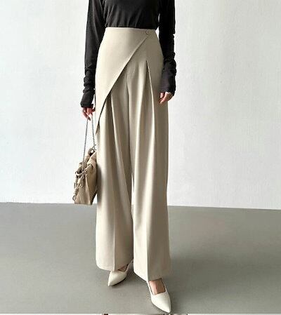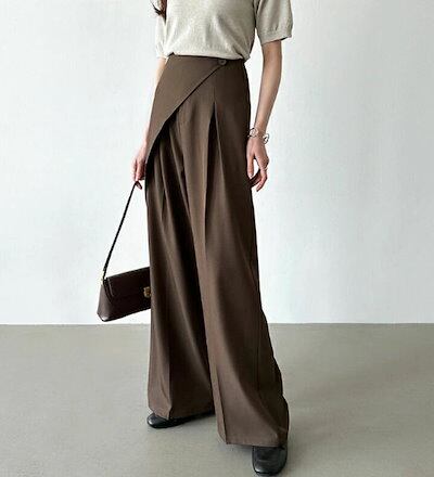 タックワイドパンツ レディース ボトムス 春 夏 ワイドパンツ タック スラックス 美シルエット オリジナル タックパンツ ハイウエスト ウエストファスナー ロング丈 きれいめ 通勤 オフィス カジュ