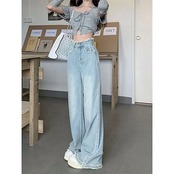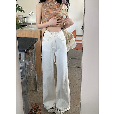 デニムパンツ レディース ハイウエストワイドジーンズレディース25ゆったりスリムストレートドレープパンツジーンズ ボトムス 美脚 ワイドパンツ