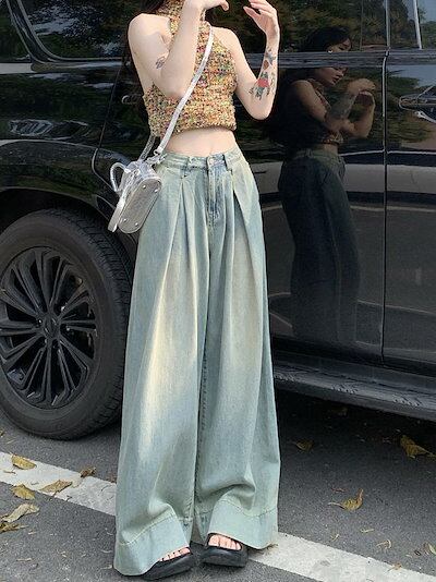 大きいサイズ スリム ジーンズ レディース ルーズワイドレッグパンツ ストレートパンツ レディース