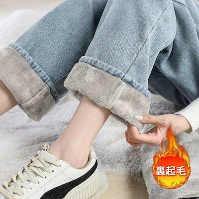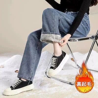 メガ割 デニムパンツ ワイドパンツ レディース 裏起毛 裏ボア ジーパン ゆったり あったか 細身 スリム 着圧 厚手 冷え防止 保温 暖 暖かい