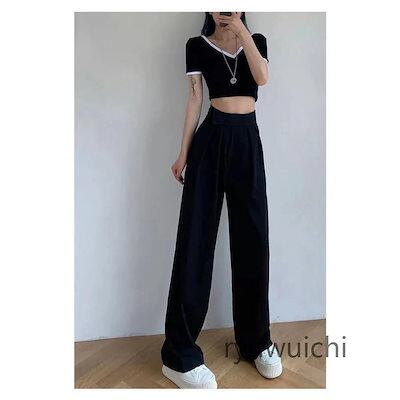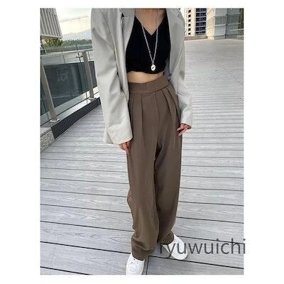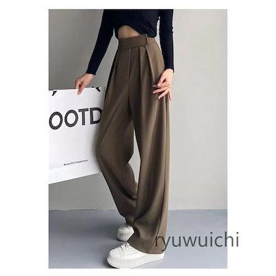 ワイドパンツ レディース ガウチョパンツ ロング スラックス ストレートパンツ ハイウエスト マジックテープ ゆったり スリム 着痩 美脚 春夏 通勤