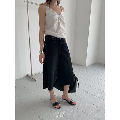 Yienou inbyin レトロ ブラック クロップド ジーンズ レディース スリム パンツ 万能 カジュアル ハイウエスト ワイド レッグ パンツ