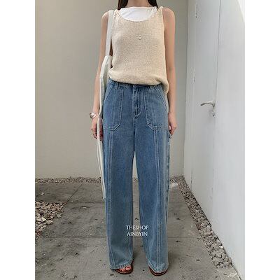 Eenou inbyin ミッドラインデザイン スリムジーンズ レディース 春 2025 新作 パンツ オールマッチ ハイウエスト ストレートパンツ