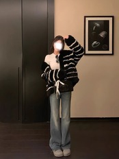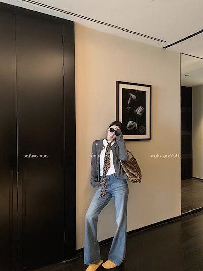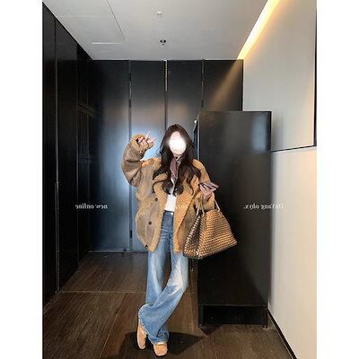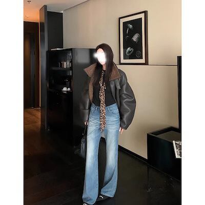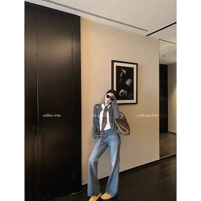 欧陽ウォッシュ加工のダメージ加工フレアジーンズレディース冬物アメリカンレトロストレートパンツスリムフィットパンツ