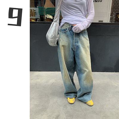 [9hour] ストリートレトロワイドレッグジーンズレディース2025秋ルーズスリムカジュアルパンツレディース8046