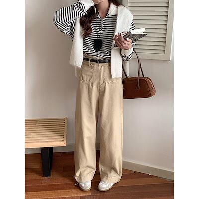 ICC 婦人服 2025 春新作 パッチポケット ハイウエスト ストレート カジュアルパンツ レディース 万能 スリム ロングパンツ 06297