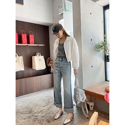 ICC レディース ウォッシュドホワイト コントラスト ストレート スリムヘム ジーンズ レディース 早春新作 901510