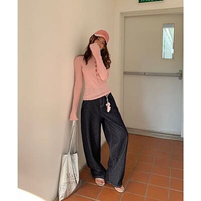 UNITY MODE アメリカンブルーシミタージーンズ レディース 夏 ゆったり スリム ストレートパンツ オーバーサイズ