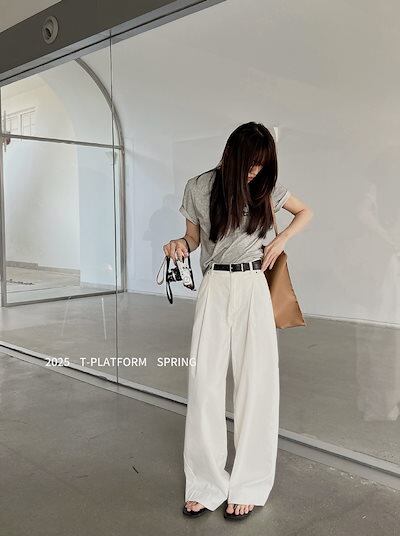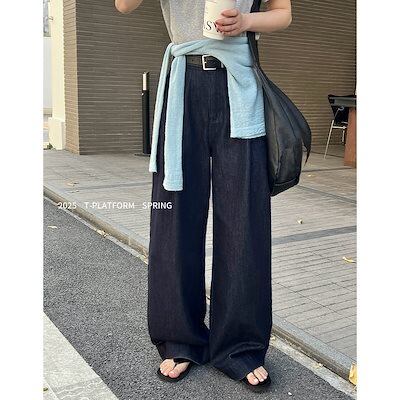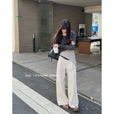 T-PLATFORM ストレート カジュアル パンツ レディース ゆったり 万能 ハイウエスト スリム モッピングパンツ 15189