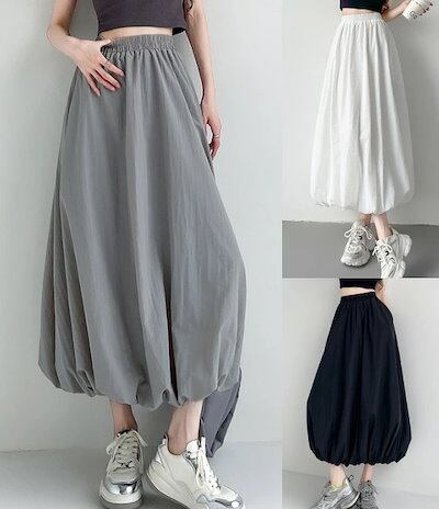 新品更新 期間限定ロングスカート 裾しぼり ランタンスカート シンプル カジュアル かわいい レディース【大きいサイズ レディース ロング 春夏 フレア スウェット パンツ レギンス スカーチョ スキ