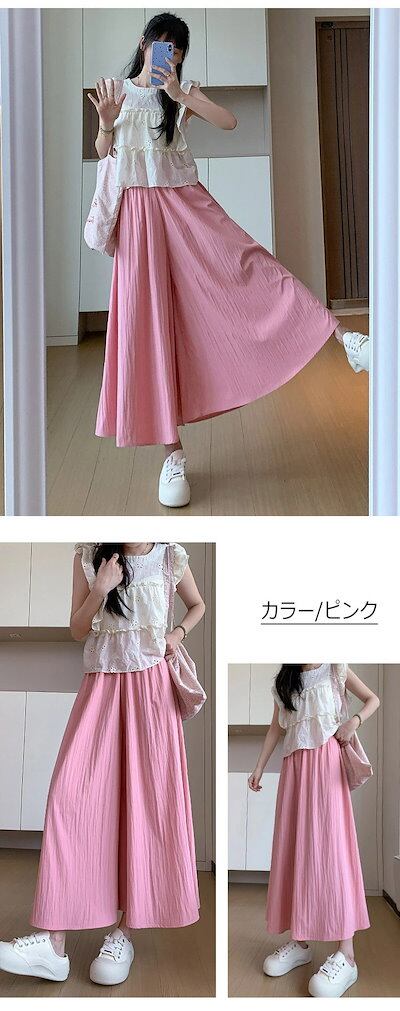 早い者勝ち! 今すぐ欲しい!ワイドパンツ レディース きれいめ 春 夏 ガウチョパンツ パンツ フレア ワイドパンツ ロングパンツ ウエストゴムパンツ 夏 接触冷感涼しい 体型カバー ゆったり