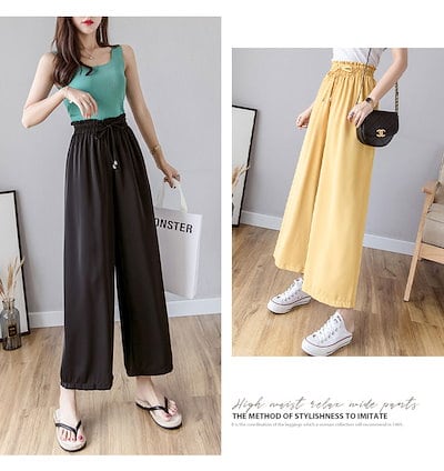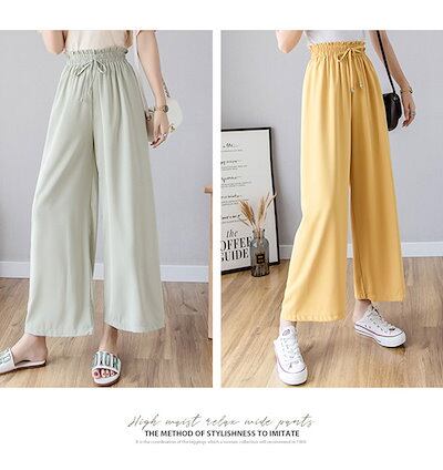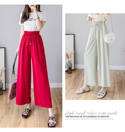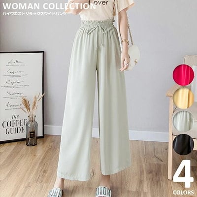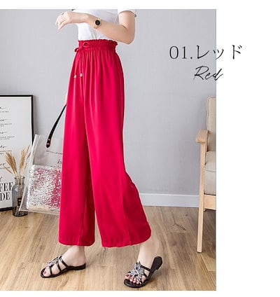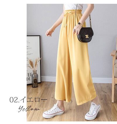 早い者勝ち! ワイドパンツ ガウチョパンツ レディース 秋 夏 ロング フレアパンツ スカーチョ れいめ カジュアル ゆったり 大きいサイズ ウエストゴム ギャザー ウエストリボン ル