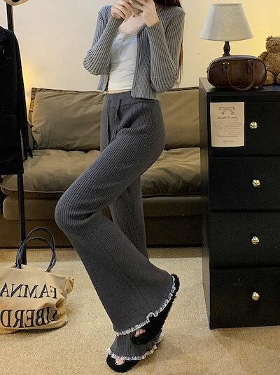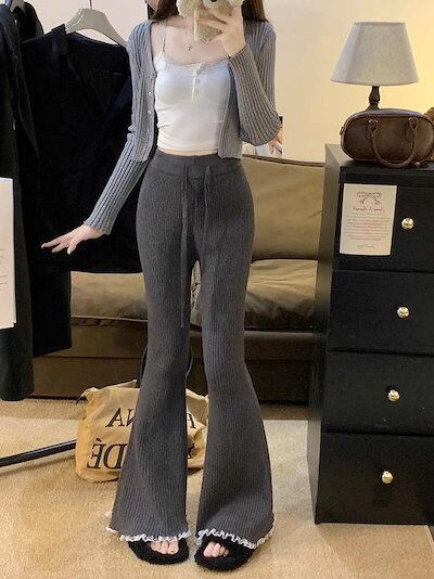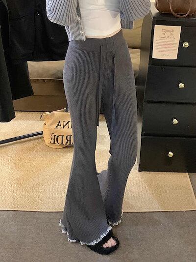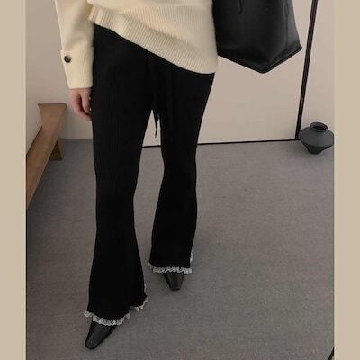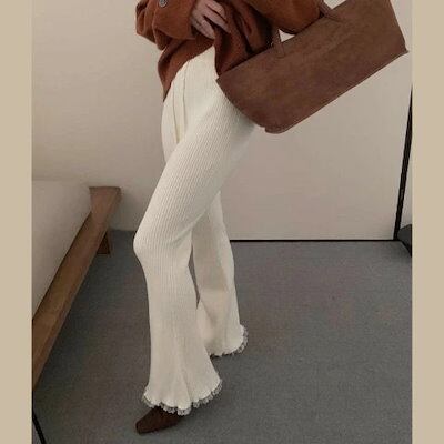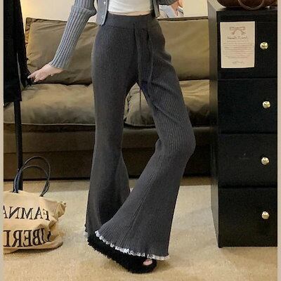最新モデル登場!新作追加 設計感 ニット スリム レース パンツ【大きいサイズ レディース 春夏 下着 ボトムス ストレート スキニー ショーツ pants】