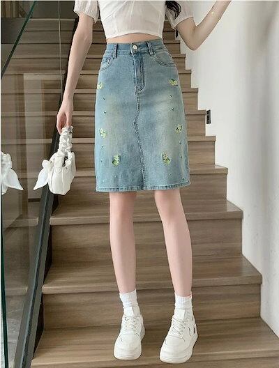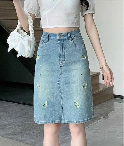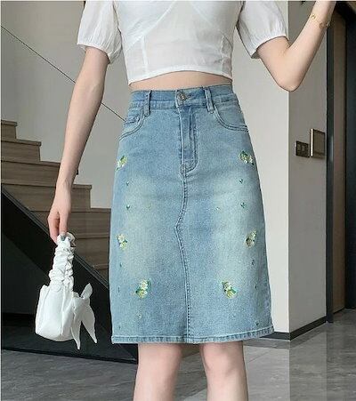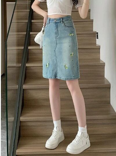 早い者勝ち! 大安売りひざ丈スカート デニムスカート ミディアム丈スカート 花柄 シンプル カジュアル お出かけ レディース【大きいサイズ レディース 春夏 フレア スウェット パンツ レギンス スカ