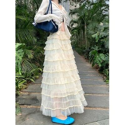 高品質新入 新品早く買いに来て ロングスカート チュールスカート フリル シンプル カジュアル お出かけ レディース【大きいサイズ レディース ロング 春夏 フレア スウェット パンツ レギンス スカ