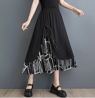 最新モデル登場!おすすめ品ひざ下スカート ミディアム丈スカート ロングスカート 柄スカート シンプル カジュアル お出かけ デート レディース【大きいサイズ レディース ロング 春夏 フレア スウェッ