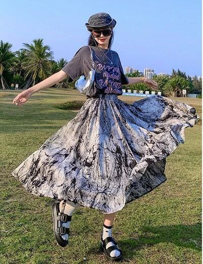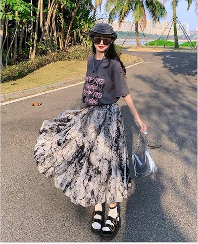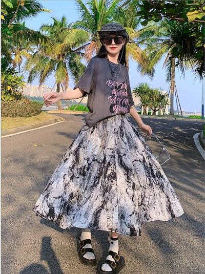 早い者勝ち! 季節限定ロングスカート フレアスカート 柄スカート お出かけ シンプル カジュアル レディース【大きいサイズ レディース ロング 春夏 フレア スウェット パンツ レギンス スカーチョ