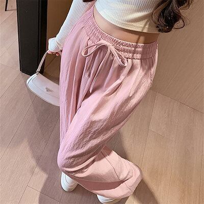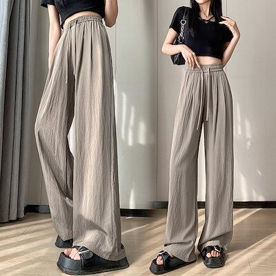 レディース夏薄手綿麻パンツリネンUVアイスシルクワイドパンツ