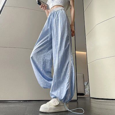 レースレースワイドパンツレディース夏リボンプリント薄手バンダナ