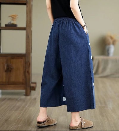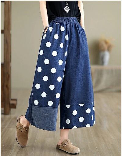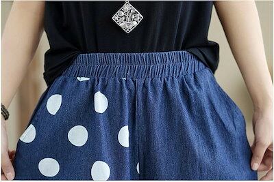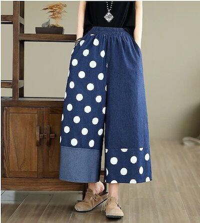 高品質新入 新品大人気 ロングパンツ デニムパンツ 水玉 ドット柄 シンプル カジュアル ワイド レディース【大きいサイズ レディース 春夏 下着 ボトムス ストレート スキニー ショーツ pants