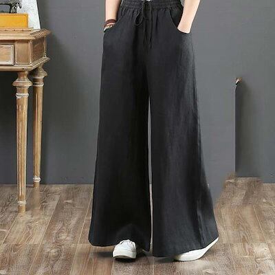 早い者勝ち! 新作 レディース リネンパンツ ロングパンツ ワイドパンツ ロング丈 ミモレ丈 ウエスト紐 ストレートワイド 綿 麻 春 夏 パンツ ボトムス ゆったり 涼しい ハイウエスト 無地 シン