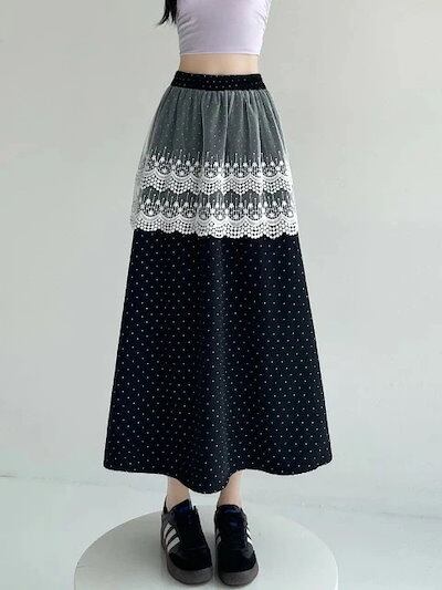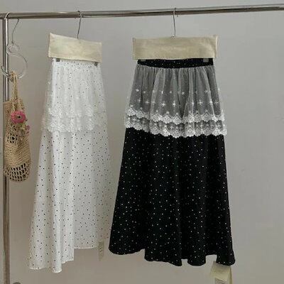 早い者勝ち! リピーター続出ロングスカート フリルスカート レース ドット柄 シンプル カジュアル お出かけ レディース【大きいサイズ レディース ロング 春夏 フレア スウェット パンツ レギンス
