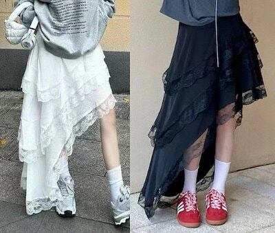 高品質新入 希少アイテムミニスカート ショート丈スカート フリル レース シンプル アシンメトリー ユニーク 個性派【大きいサイズ レディース ミニ タイト セクシー プリーツ 春夏 フレア スウェッ