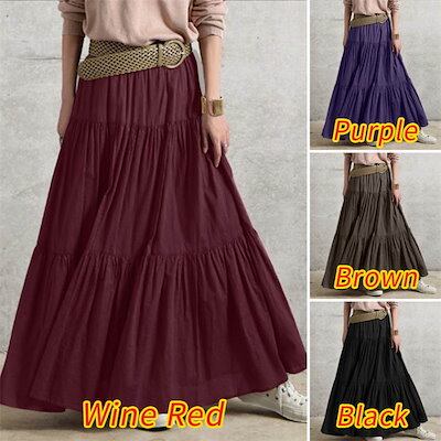 ティアードスカート スカート マキシ丈スカート 綿麻調スカート 綿麻調 ウエストゴム ボトムス レディース 無地 ロング丈 マキシ丈 ファッション きれいめ 大人 上品 エレガント おしゃれ OL