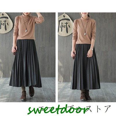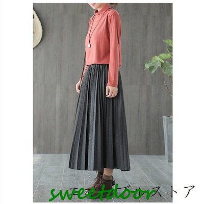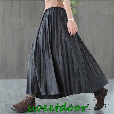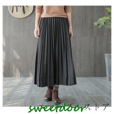 スカート レディース 秋冬 ロングスカート ボトムス ロング丈 プリーツ ウエストゴム 体型カバー マキシスカート 冬 グレー コーデ 30代 40代