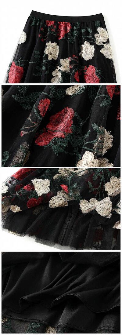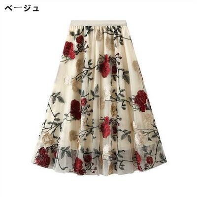 スカート ロング チュールスカート 刺繍 花柄 チュール ボトムス ロングスカート レディース 裏地あり ハイウエスト ウエストゴム 春 夏 秋 着?せ aライン ガーリー 大人 エレガント おしゃれ