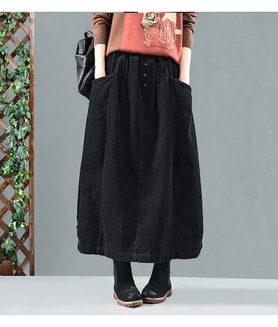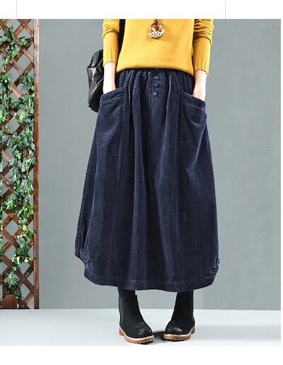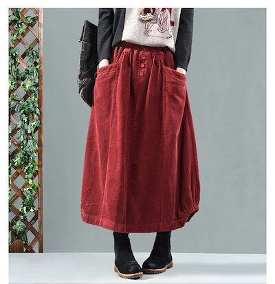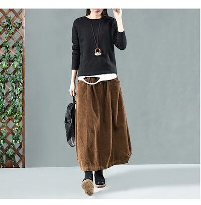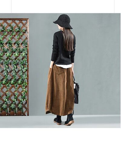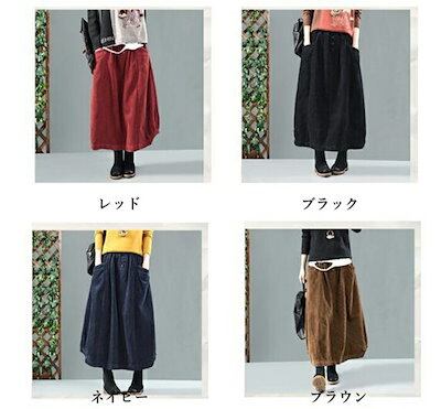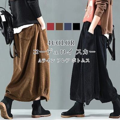 【即納】コーデュロイ スカート レディース ロングスカート ロング ウエストゴム マキシスカート ゆったり バルーンスカート マキシ丈 ポケット Aライン フレア ボトムス 冬 秋 着回し シンプル