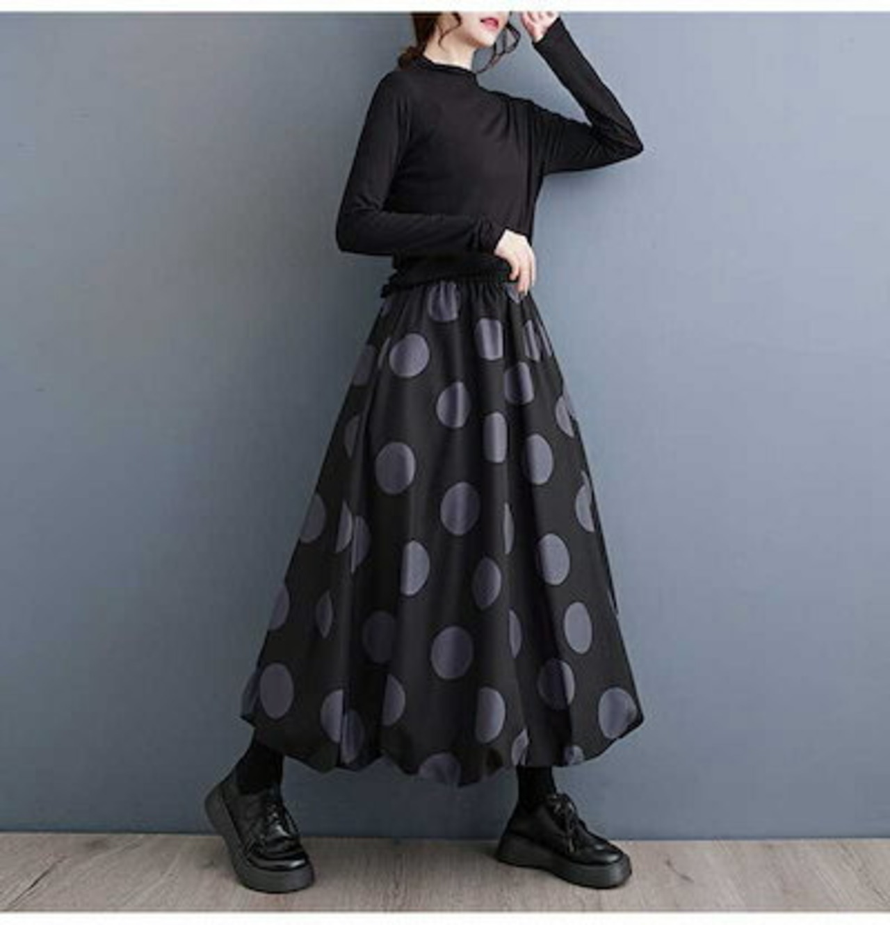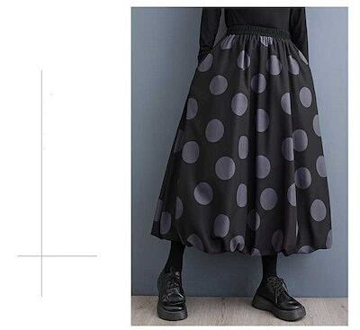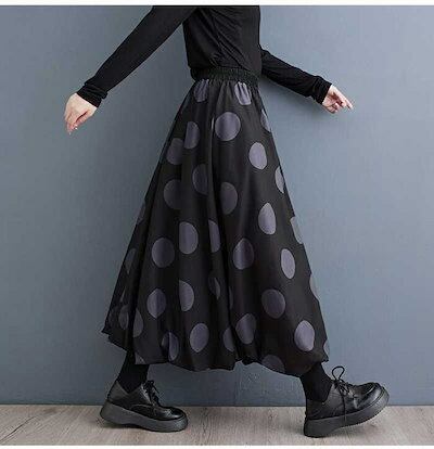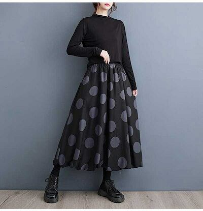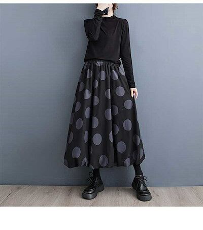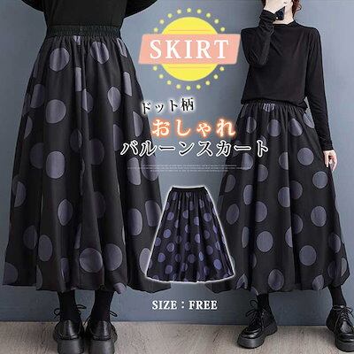 【即納】バルーンスカート レディース ロング スカート aラインスカート ドット柄 ハイウエスト ウエストゴム ロングスカート ボトムス マキシ丈 バルーン 黒 フレア Aライン カジュアル ファッシ