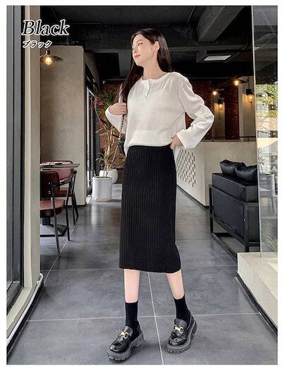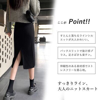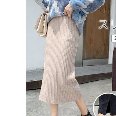 【即納】ニットスカート タイトスカート リブ スリット レディース スカート ウエストゴム バックスリット 膝丈 ストレッチ ミモレ丈スカート ボトムズ ひざ丈 ロング丈 新作 きれいめ 秋 冬 春