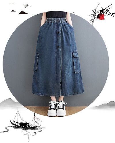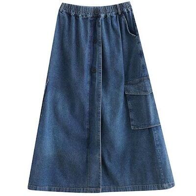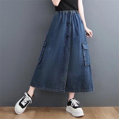 2点購入で200円割引安いリピーター続出レディース デニムスカート ロング ウエストゴム デニムロングスカート ロングデニムスカート ゴムスカート 前ボタン ロングスカート 体型カバー 無地 秋デニム