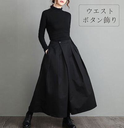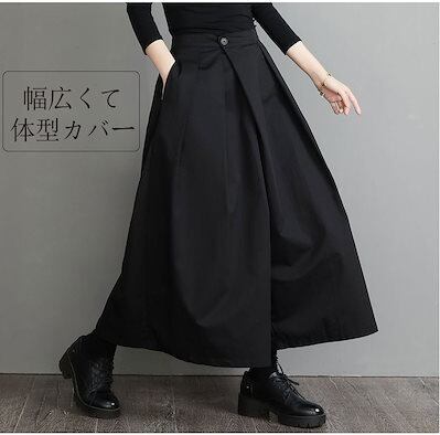 2025新作 ワイドパンツ ロングパンツ ロング丈 レディース ボトムス パンツ 大きいサイズ ゆったり 春秋 フレアパンツ ウエストボタンデザイン バックゴム ガウチョパンツ 着痩せ 体型カバー ス