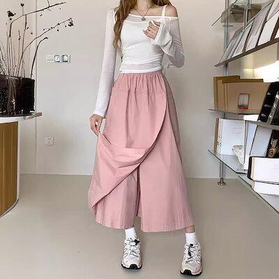ワイドパンツ 夏 ラップパンツ 巻きスカート風 パンツ レディース ガウチョパンツ 巻きスカート スカーチョ ボトムス ウエストゴム ガウチョ イージーパンツ ワイド 体型カバー エプロンパンツ タッ