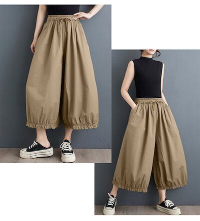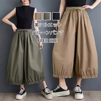 バルーンパンツ レディース ワイドパンツ パンツ バルーン スカート風 タック ズボン ギャザー ウエストゴム ハイウエスト ガウチョパンツ ポケット ゆったり 大きいサイズ ボトムス 体型カバー 無