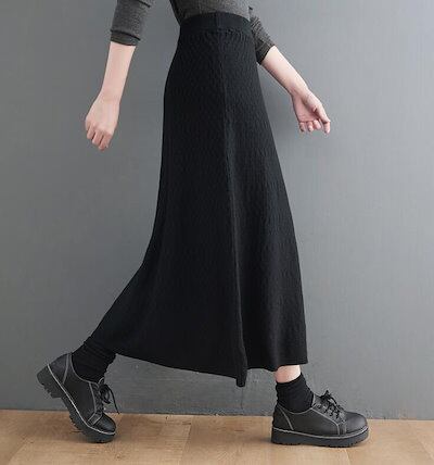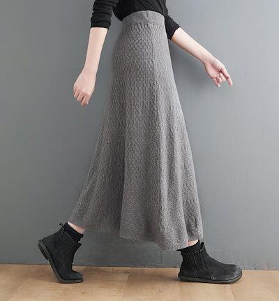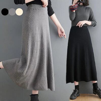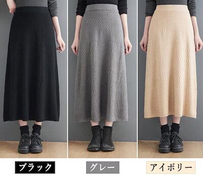 ニットスカート フレアスカート ロングスカート レディース ウエストゴム トレンド 美脚 ボトムス 防寒 あったか デート 女子会 秋冬
